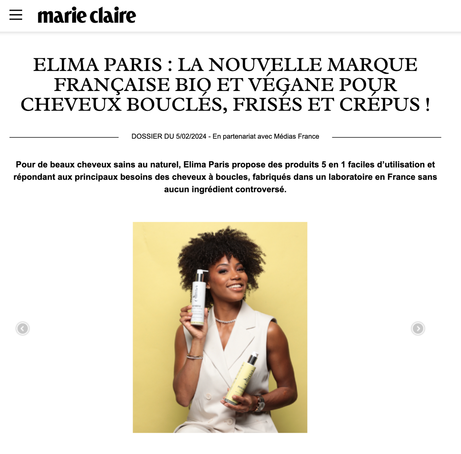 Elima Paris est une marque dédiée aux cheveux bouclés, frisés et crépus. Nos formules clean, vegan et enrichies en ingrédients naturels révèlent la beauté naturelle de tes boucles sans compromis sur la qualité ni la santé du cheveu.