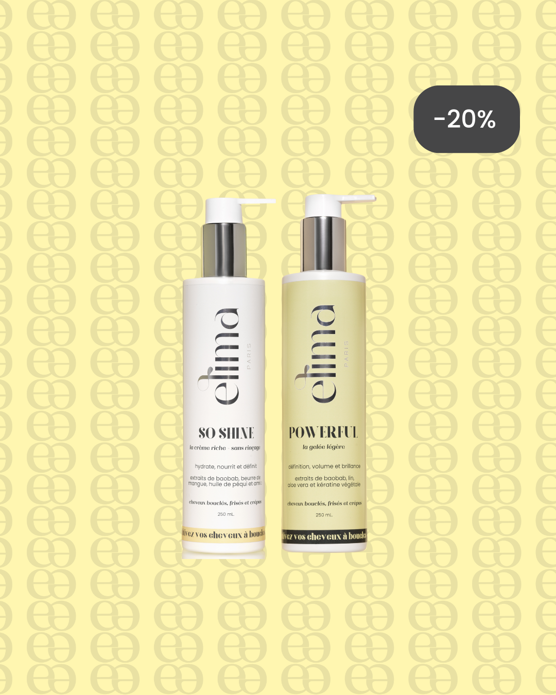 Elima Paris est une marque dédiée aux cheveux bouclés, frisés et crépus. Nos formules clean, vegan et enrichies en ingrédients naturels révèlent la beauté naturelle de tes boucles sans compromis sur la qualité ni la santé du cheveu.